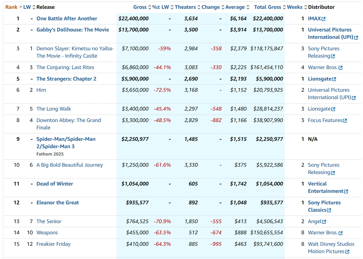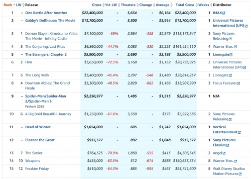 Tres días en cartelera, y 'Una batalla tras otra' ya es la tercera película más taquillera de Paul Thomas Anderson; dos días más y ya será la segunda... y para cuando acabe el próximo fin de semana, se habrá impuesto a 'Pozos de ambición' como la primera.